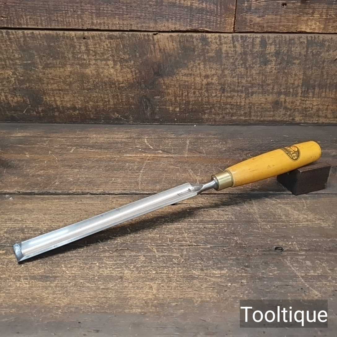 The chisel has been checked to ensure the tang is seated properly and the handle is solid and fit for use. All refurbished chisels are water cooled during the sharpening process to ensure the tempering is not affected.