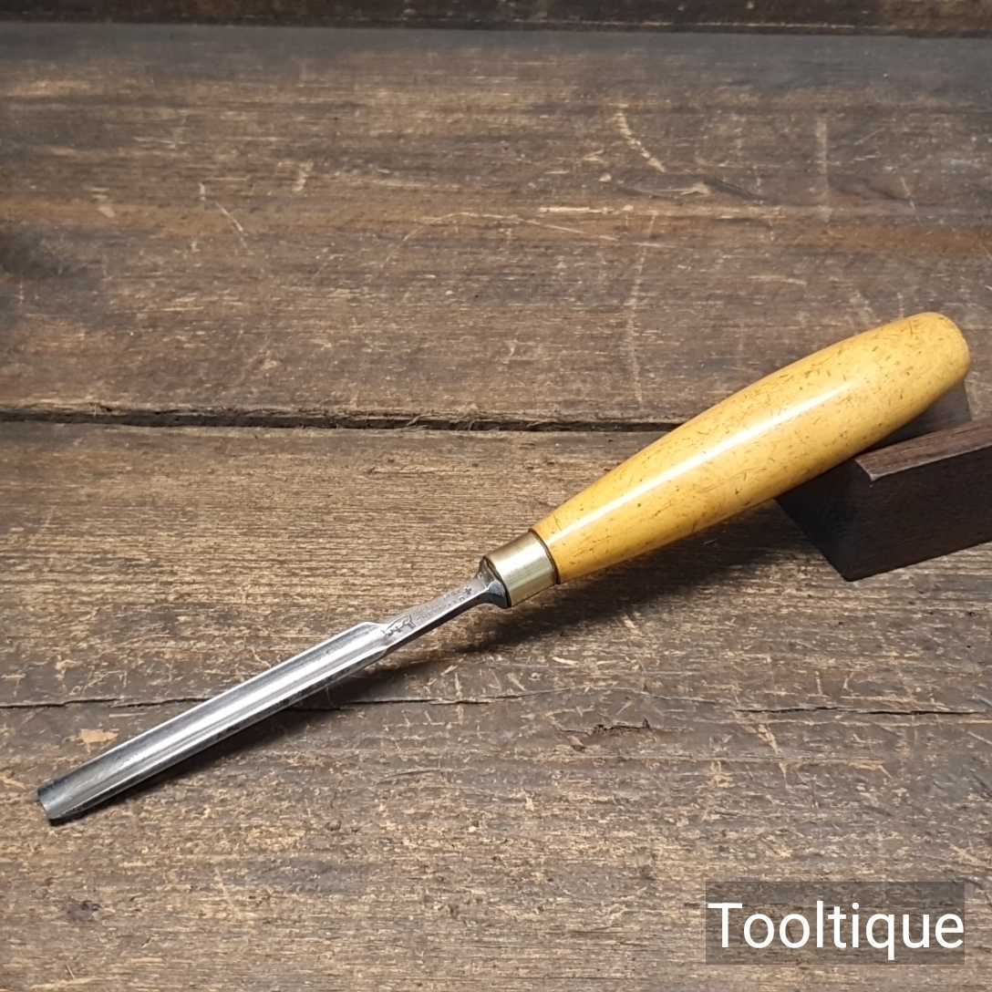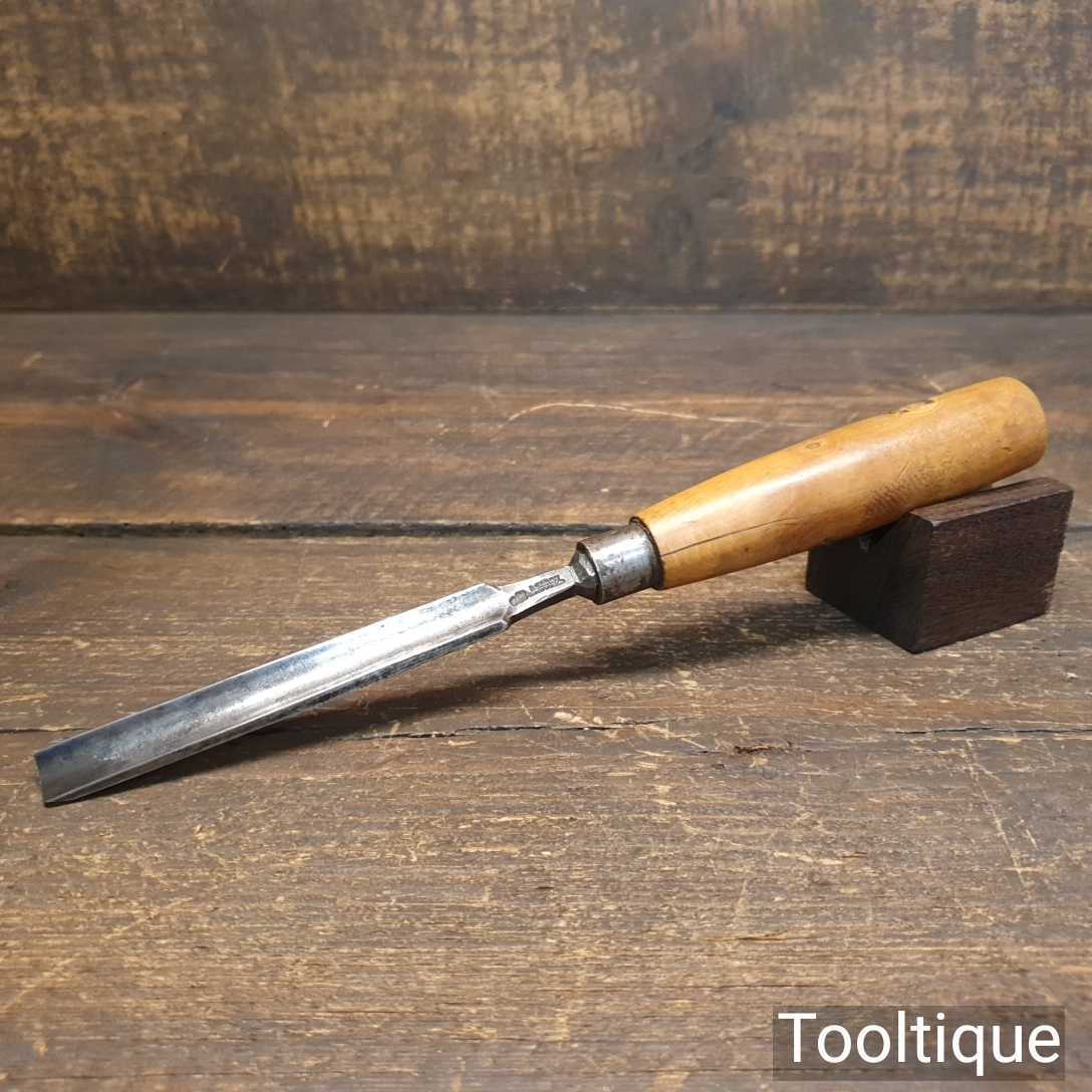 Vintage carpenter’s 11/16” gouge chisel with beechwood handle in good used condition, fully refurbished sharpened and honed ready for use.
