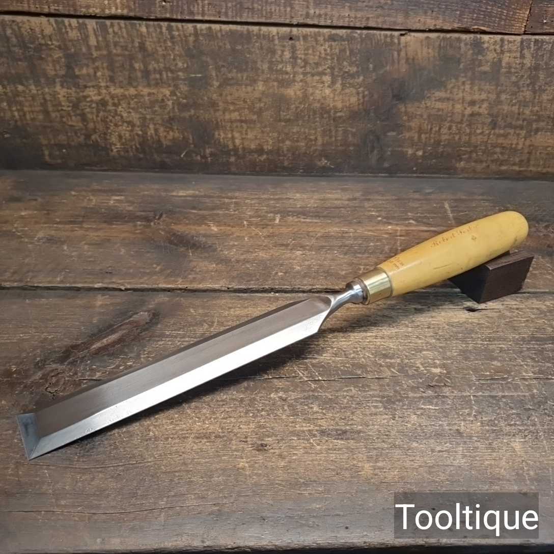 Vintage J. B. Addis & Sons carpenter’s 1” firmer chisel with boxwood handle in good used condition, fully refurbished sharpened and honed ready for use. Note: Old handling crack resin treated and is strong.