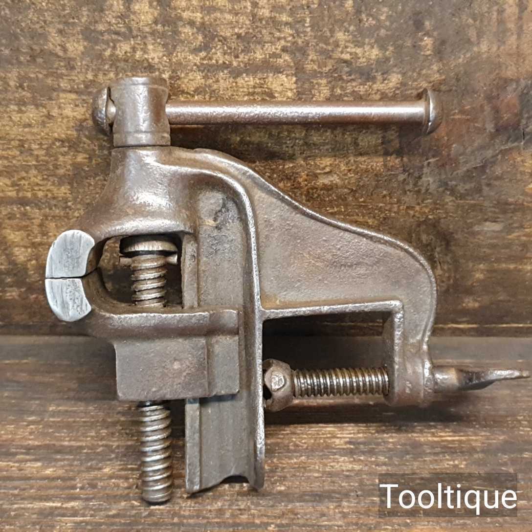 Vintage Ministry Stamped 1950 Cast Steel Hand Vice with 1 5/8” wide jaws in good used condition.
