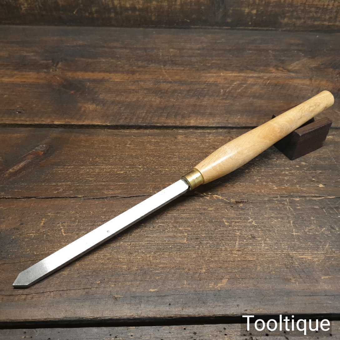 Vintage S. Tyzack & Sons ¾” woodturning skewed flat chisel with an Ashwood handle, refurbished ready for use and in good used condition.