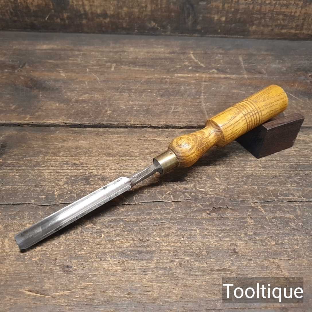 Vintage W. K. & C. Peace carpenter’s 7/16” gouge chisel with ash handle in good used condition, fully refurbished sharpened and honed ready for use.